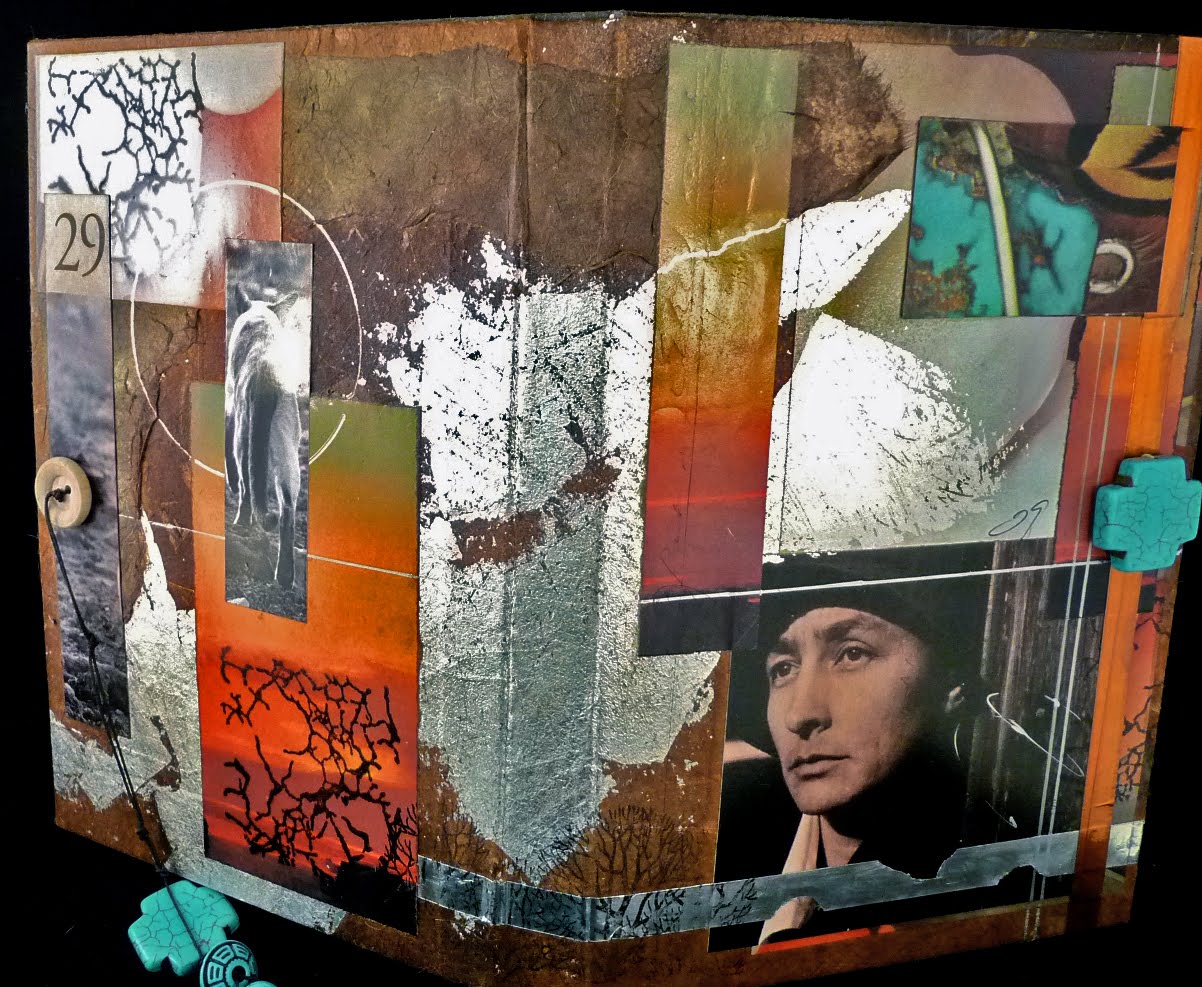 Finished this cover last night – it went together quickly, which is a good sign. I used a photo of Georgia O’Keeffe and in the process read again about the timeline of her life. What a remarkable artists’ journey she lived. Here are some photos – even the fittings and inside cover went together well. Woohoo 🙂
