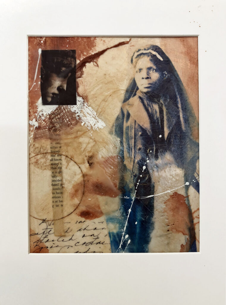 I’m attaching an image of the encaustic collage I did of her in 2020. Here is an excerpt from an article that I wrote for the Winter Issue of Encaustic Arts Magazine that year which explains how I work with historic images and how that image of Susie King Taylor just grabbed me when I saw it in a library archive.