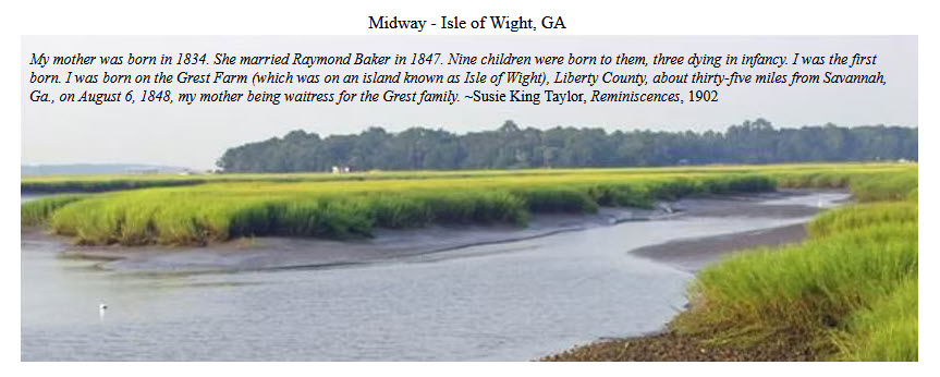 I had no idea who she was, but researched her name and found that Susie King Taylor served more than three years as nurse with the 33rd U.S. Colored Troops Infantry Regiment during the American Civil War. She also taught children and adults to read while serving with the regiment. You can read more of the story here.
