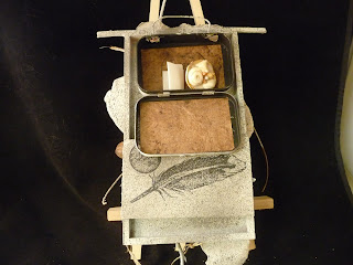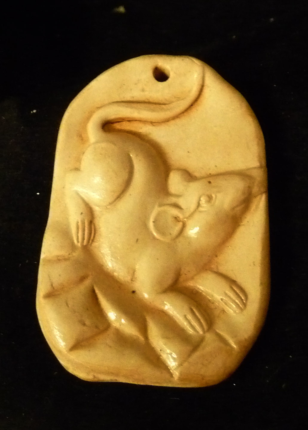Something new, just for fun – I worked with some polymer clay after taking some small molds from little carved bone faces. I had to use polymer clay to hold the detail since earthenware is not fine enough. Here are a couple of results – I love the little round faces! I’ve already used them on some Spirit Boxes and some Shard Pins. The pendant is a cast copy of one that a good friend gave me for my birthday – you can see how the polymer clay retains the details of the original. The one in the photo is the clay copy – looks real!!