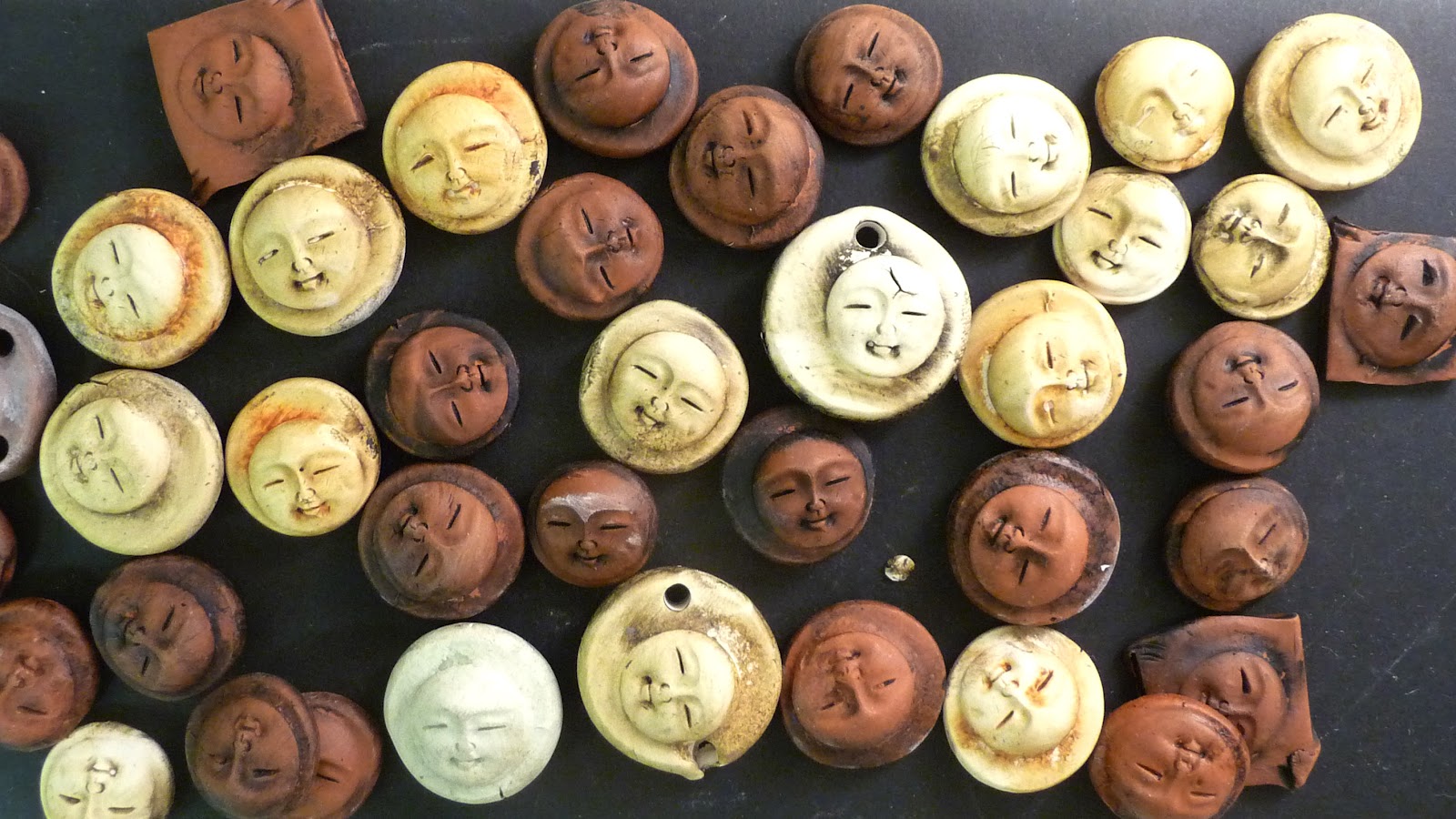 This was an amazing creative experience – taking the shard faces and pendants we made in Part One of the clay workshop and enhancing them with beads and cord and embellishments. Ann Pearce, friend and jewelry designer, took the participants through each step, helping them choose beads and colors and wires to transform their earthenware pieces into beautiful one-of-a-kind art to wear. This is definitely a workshop I’d like to repeat. If the videos inspire you and you’d like to participate next time, send me an email!