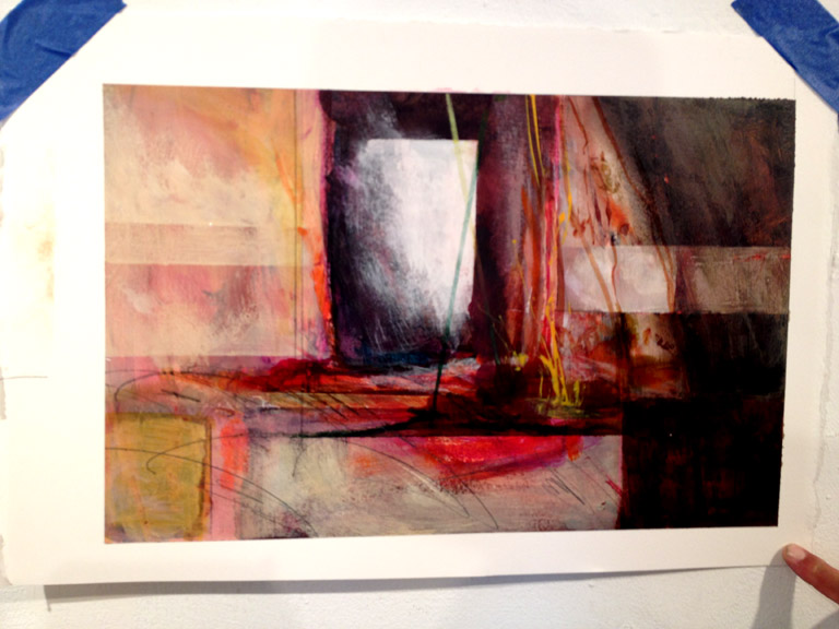 Yesterday I created three small “painterly” collages on canvas and took them to Nueva Street Gallery for their feedback. Ugur, one of the gallery owners, liked them, but I was in such a hurry to get them down there, I forgot to take photos. Arg. Each one had acrylic paint elements inspired by Gwen Fox’s workshop. Here’s a video of our week with Gwen. Everyone in the group is keeping in touch – the whole experience was challenging, bonding, humbling, rewarding and encouraging.