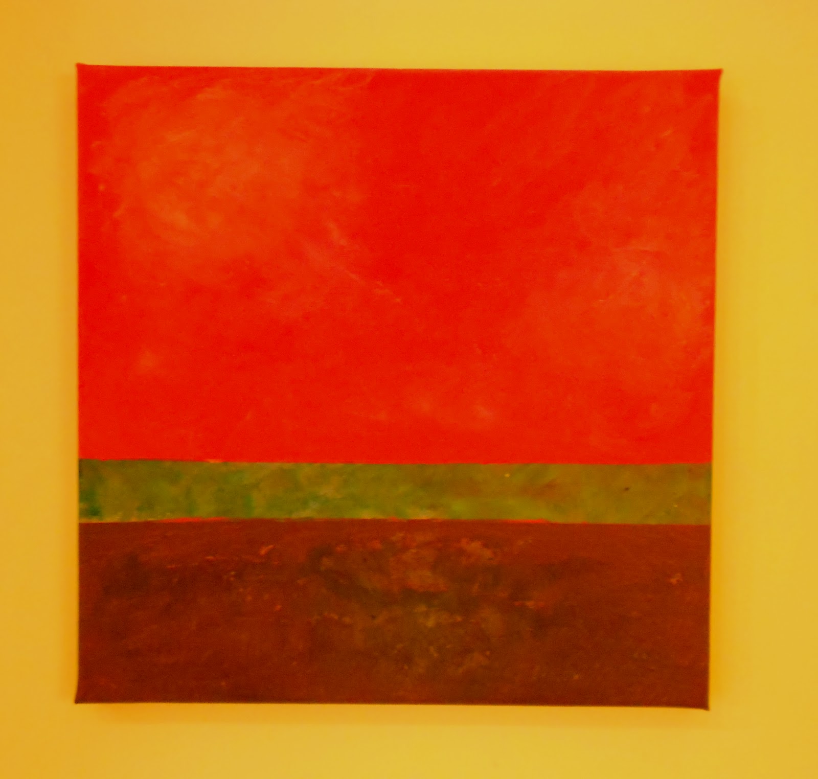 Day Two of Gwen Fox’s workshop and I am on a steep learning curve and loving it. This morning Gwen demonstrated color mixing with three basic colors only – then we painted. My first attempt at abstract layout (far from finished) is below.