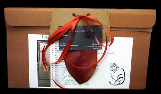 I agonized over how to present my work to the Cloth Paper Scissors editors before I packed it to mail it off. I ended up “re-imagining” some of those brown kraft expanding office folders. I put a strip of mat board in the bottom of the two smaller ones to hold them open, then scored and trimmed the flaps to make fold-overs with punched holes and ties. The larger one was done the same basic way, but the iPad cover was too large for flaps, so I skewered it with some bamboo toothpicks.
