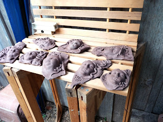 I had what stores call a “soft opening” when I posted my first Scent Shard sculptures on the ETSY gallery site this morning, and darned if one didn’t sell right off the bat. I was absolutely delighted. Two more sets sold to a friend, so I’m working away getting ready for my Etsy art showcase next Thursday. Also, Carole at La Vida Gallery wants to carry them, and lots of other people have shown interest. We’ll see how far it goes, but right now, I’m having a good time working with clay and I look forward to firing my own kiln next week. Here is a link to one of the Scent Shards on ETSY, and here is another link to a short YouTube video that I did this afternoon, totally unrehearsed but enjoyable, as I described the process of making the molds and then pressing the sculptures.