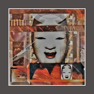 Amazing burst of energy today. I finished another piece based on what I had learned with the previous work. It may be one of my favorites, titled (right now, anyway) “Noh Festival. Unfortunately, I was so excited about it that I framed it before taking a photo, so this photo is shot through Plexiglas! I will probably take it apart and re-take later, but right now I’m happy to just relax. I’d hoped to get six paintings done over spring break – this makes four. Remind self – it’s quality, not quantity that counts. Er, right…?