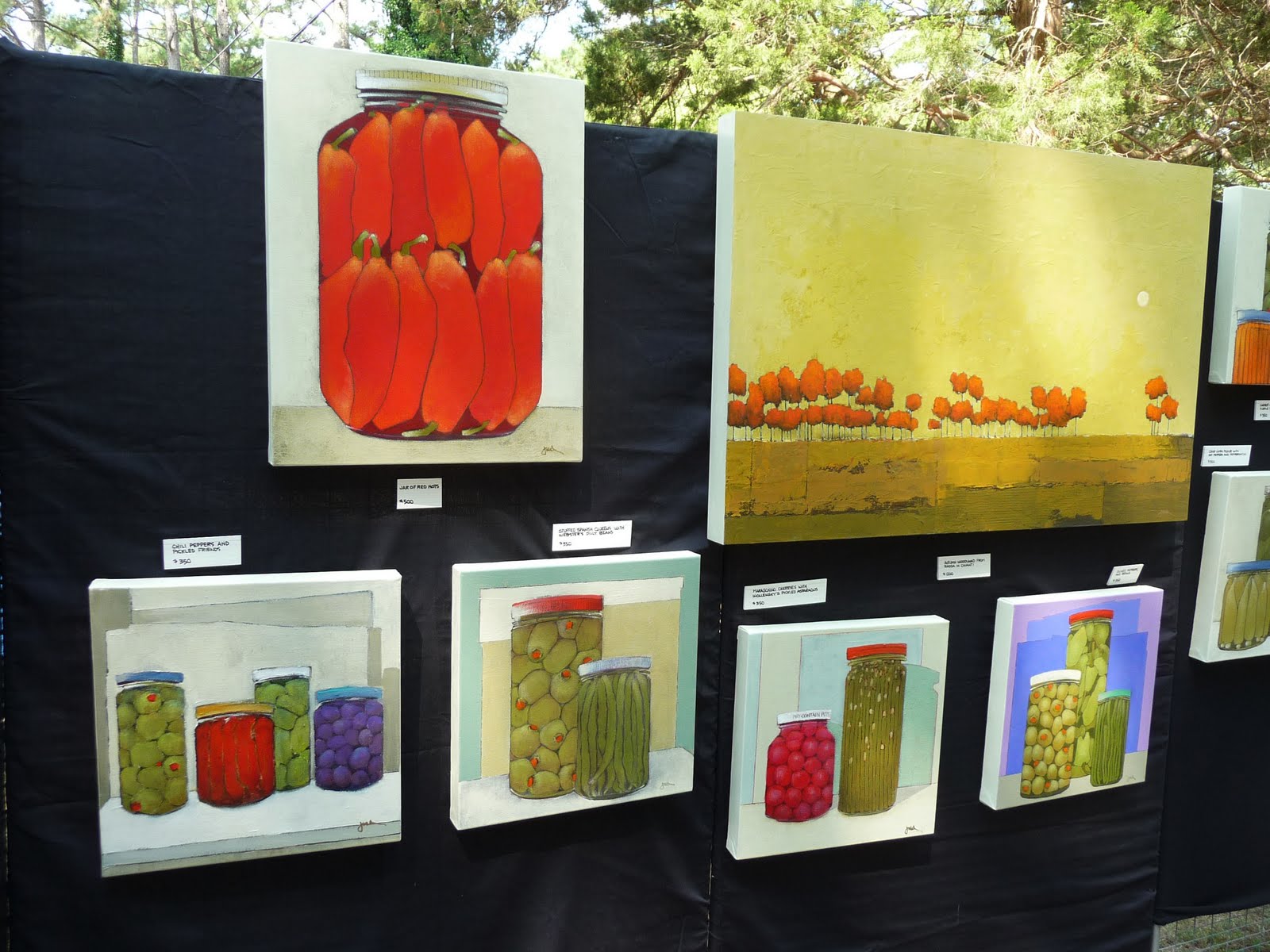 Outdoor Fine Art and Fine Craft Show with my friend, Pat Semmes, and our hosts, old friends Peter and Victoria Jennings. As the printed program said, on exhibit were “the work of over 100 artists in every medium imaginable.” I got so many ideas and really had a chance to think about evaluating art, what I liked, and how that compared to what seemed to be popular – still thinking about all of that. The setting under the pines was beautiful and the Eastern Shore weather in Rehoboth Beach couldn’t have been more perfect. I saw some new oil paint techniques that were really impressive. Lots to take back home to try in the studio.