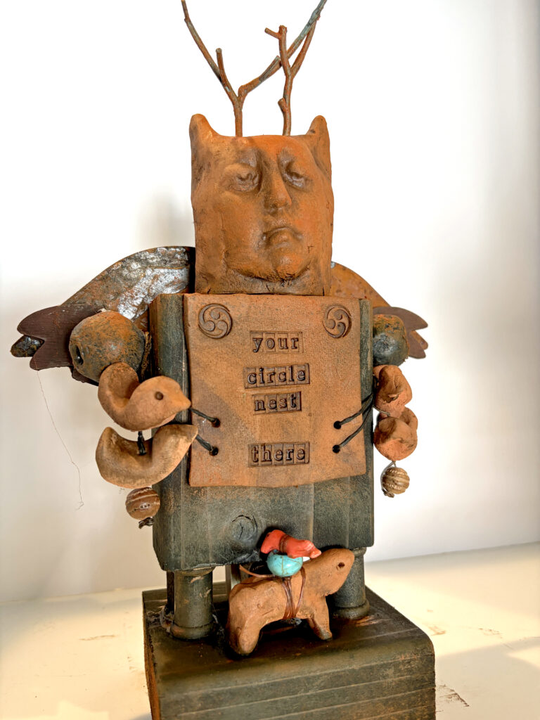 While working on my Encantos and Mendicant Messengers for the Taos show, it became very clear to me that there was no rational way to calculate their “value.” Every element was touched, considered, set aside, returned to, and finally placed with care. The work carried intention, patience, and a kind of spiritual listening that doesn’t show up on a spreadsheet. How do you put a price on that?