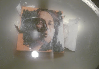 Gently rub the paper off, leaving the ink design – you can see that it came off around the edges, but I think if I had torn the edges to make them softer, this might not have happened.