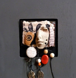 It’s been a while since I’ve done these little shard pin collages- I love working in this format. Here are ten new ones from the studio. They will go with me tomorrow to the Trinity Alumni Artisan Show. If you haven’t seen these before, they are clipped to the frame interior matboard with a strong bar magnet so they can be taken off and worn as a pin. There is also a clear straw “channel” on the back that a cord can go through so the construction can be worn as a pendant. They also look cool on a hat – or a lampshade 🙂 I’ll have more of these at my December 1st Open House/Open Studio event. Invitations will go out next week and everyone is invited!