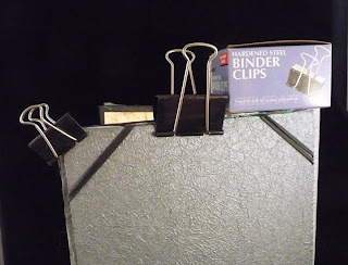 This tip is probably known by most everyone, but I had need of it today for holding just the corners and one edge of a cover while the glue was drying. These binder clips come in different sizes and really hold tight, tighter than a clamp for small jobs. I like the way the look, too – simple and efficient. Too bad other little day-to-day things in life aren’t that way!