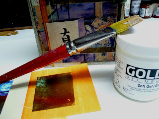 I was watching a collage video on You Tube and the demonstrator kept talking about Soft Get for adhering paper – what’s that?? I found some at Michael’s and tried it – great stuff! It works beautifully for delicate papers such as joss and tea papers. Here’s a pic of one of the latest covers with joss paper accents: