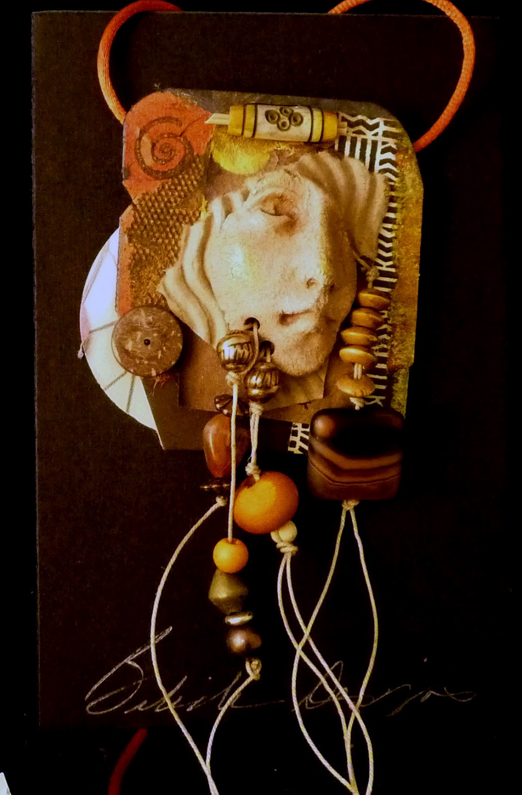 Something new – a friend at the Open Studio choose two small earthenware faces from my collection and asked me to build a collage pin/pendant around them – here are the results. I really liked working like this.
