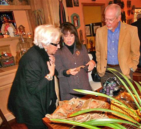 The studio was open for visitors, but the action was in the living room where my friend Jan and I set up our work – it was a cold gray day, but brave friends came out to eat and visit and shop. It’s such a good, low-pressure way to share and sell art. Jan and I both did well. Her work is gorgeous, especially her metal clay creations. Surprises for me were the pins and the little cards, which sold out quickly – lots of scent shards sold as well, so the event was successful on all levels. Here are a few photos – my house *almost* looks like a real gallery! Jan and I are planning another sale in April – hooray! I may be recovered by then.