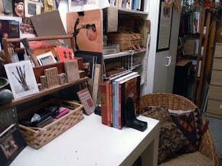 Just in time for semester’s end, the studio is becoming a workable space again after all if the construction. It was the “highway” between the driveway and equipment outside and the remodeling on the inside. But with the completion of the new pantry, the freezer has been moved and the freed-up space adds a lot of flat workspace to the room. I even have room to set up my light box. Now if I could magically create some extra time to work, I’d be set! But it’s a comfortable space, deceptively organized and full of possibilities!