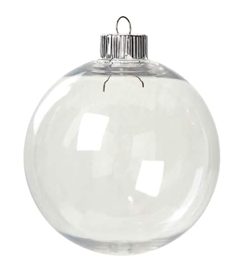 OK, well, that’s my story and I’m sticking to it. I’m always thinking up artistic projects to share with you (and any assorted kids). Here’s one that just (*eureka*) came to me when I saw some clear plastic ornament with removable tops that were on sale yesterday at Michaels. Get a few of these: